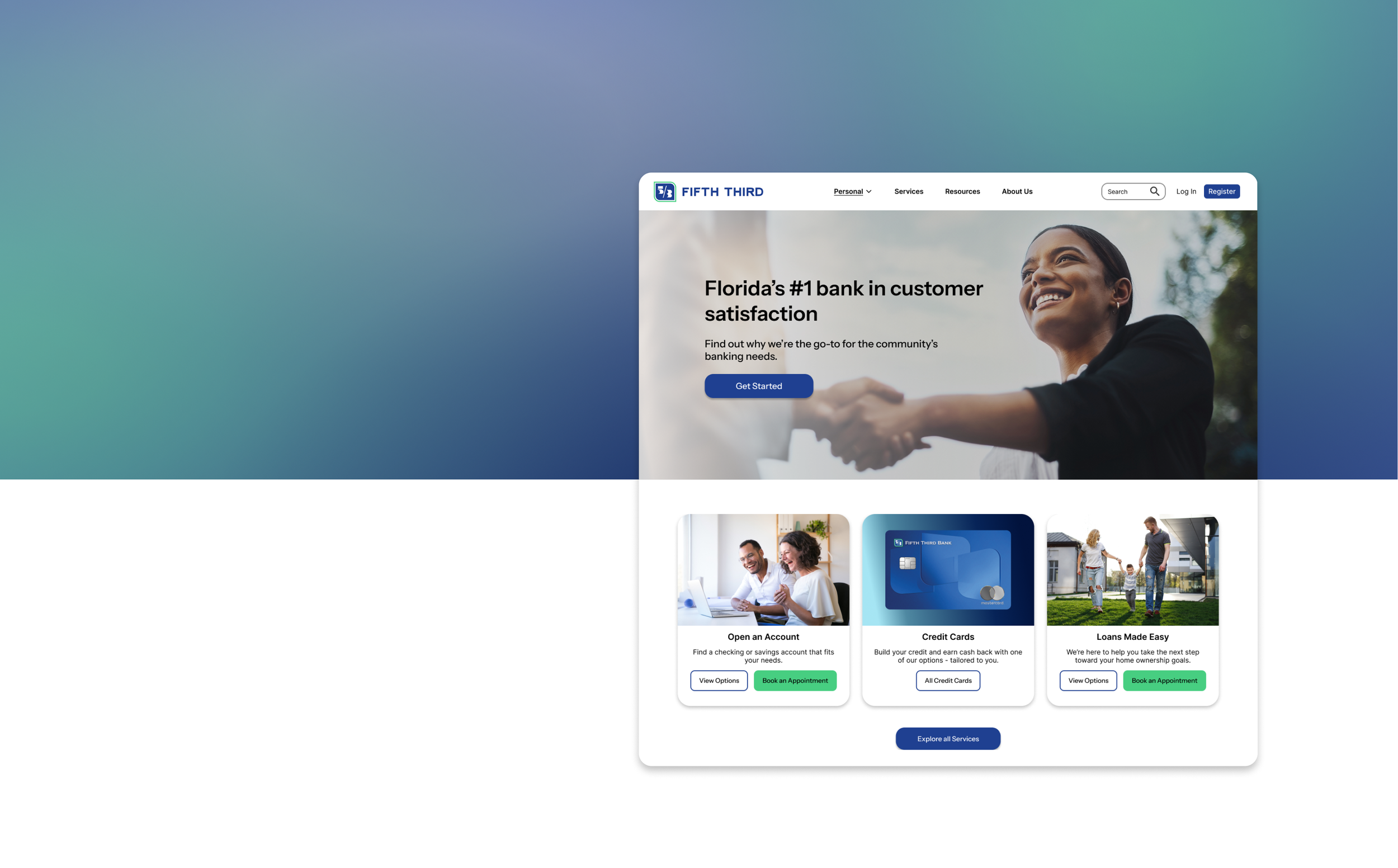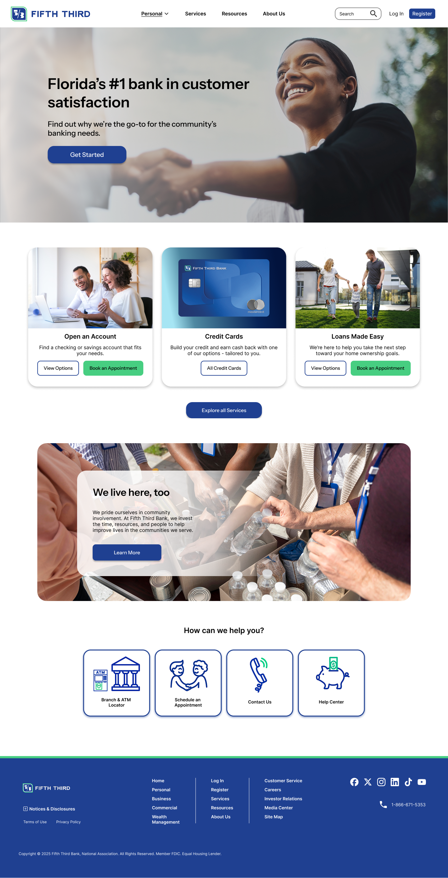 This is the current home page of the Fifth Third Bank website— the first search result when you google “fifth third bank”. There is much to be desired here. After analyzing the ideal users, I will go over the main issues that need to be addressed.
